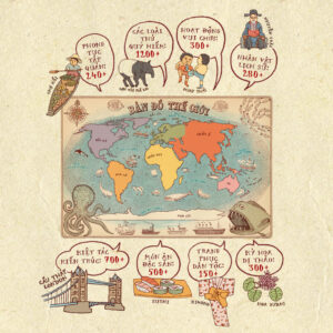 - Hãy khám phá thế giới cùng cuốn bản đồ khổng lồ đầu tiên ở Việt Nam! Sách gồm 52 tấm bản đồ minh họa sinh động các đặc điểm địa lý và biên giới chính trị, giới thiệu những địa điểm nổi tiếng, những nét đặc trưng, về động vật và thực vật bản địa, về con người địa phương, các sự kiện văn hóa cùng nhiều thông tin hấp dẫn khác.